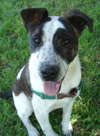 Young Argos, a 9-month-old boxer/Australian shepherd mix, is a bright young pup who's grown up at the shelter and become a great favorite with the staff. He's mastered basic obedience, is learning agility tricks, has gotten along well with many canine roommates, and is waiting for a family to call his own.