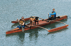 Dogs are welcome to ride with their paddling people. For stability, an outrigger canoe is recommended; dogs can sit on the platform atop the canoe or on the floor. A new “canine cruiser” canoe can accommodate up to four dogs on a large, padded platform.
