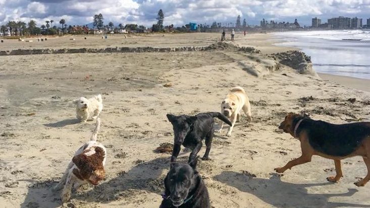 Coronado’s Dog Beach offers leash-free fun year-round and is conveniently located across from Sunset Park on Ocean Boulevard, adjacent to Coronado’s North Island U.S. Naval Station. The off-leash dog beach is located at the north end of Central Beach. Parking is readily available on Ocean Boulevard and nearby streets, and visitors can safely walk their dogs on leash across the road before reaching the sandy shore via a designated pathway.