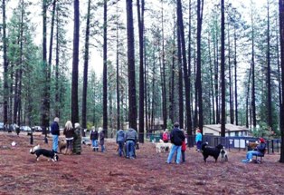 Dogs Run Free is 1.7 fully-fenced acres of beautiful ponderosa pines and scrub oaks, and includes 10 benches for people socializing, too.