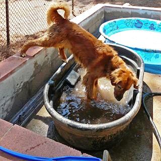 Recently, the non-profit that maintains Dogs Run Free, built a pool pad and dedicated water hydrant for doggy pools, a very popular enhancement for both the safety and fun of running dogs during the heat of the summer.