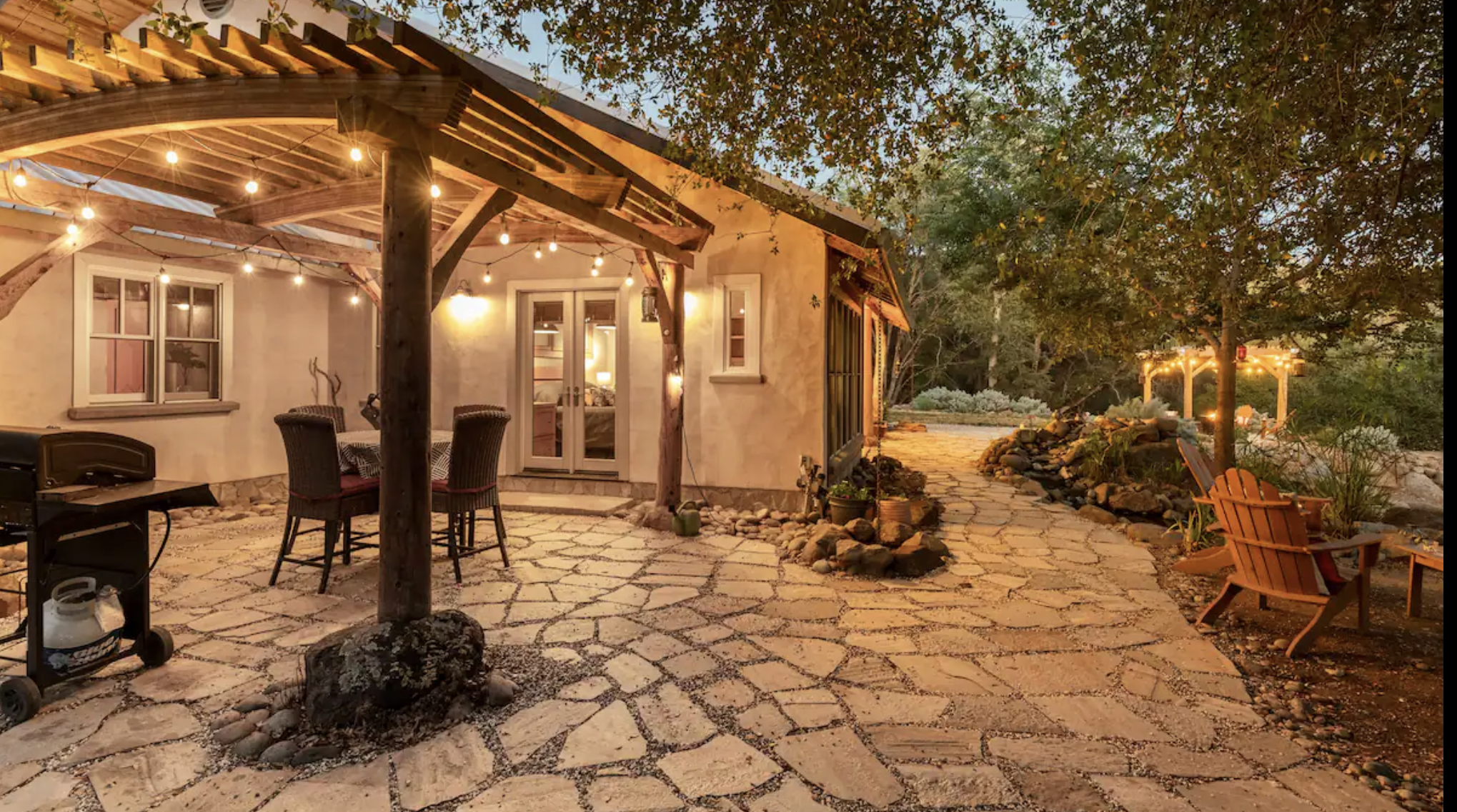 The Sonora Straw Bale House in Gold Country offers a unique stay for travelers seeking a modern, light-filled retreat. This stunning home, built from straw bales, is located in the heart of Tuolumne County, providing a serene setting near a seasonal pond and creek. Guests can relax outside by the fountain, sipping on a glass of wine or coffee while observing turkeys and deer passing through the property. The Sonora Straw Bale House invites visitors to immerse themselves in nature’s beauty while enjoying the comfort of a well-appointed accommodation.