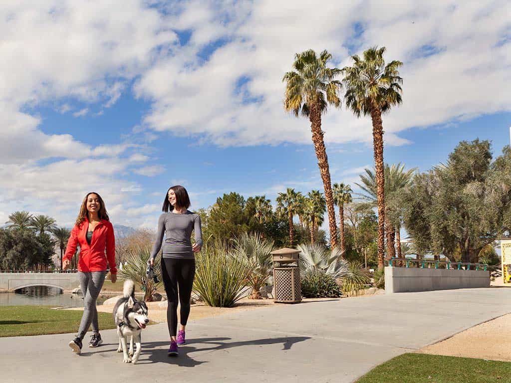 Soak up some sun while fetching and frolicking with new furry friends. You’ll find space to get all those zoomies out at the dog park (and Greater Palm Springs has plenty). Almost all offer stunning views of the mountains, and some even feature solar lights for nighttime fun.