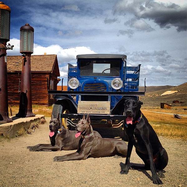 There are options aplenty for side trips along this gorgeous corridor. A DogTrekker favorite is Bodie State Historic Park, a gold-mining ghost town where leashed dogs can join their uprights in exploring deserted streets and peering into windows of abandoned buildings preserved in a state of “arrested decay.” Bring a picnic lunch and water for you and your pet, as there’s nothing available on the remote grounds.